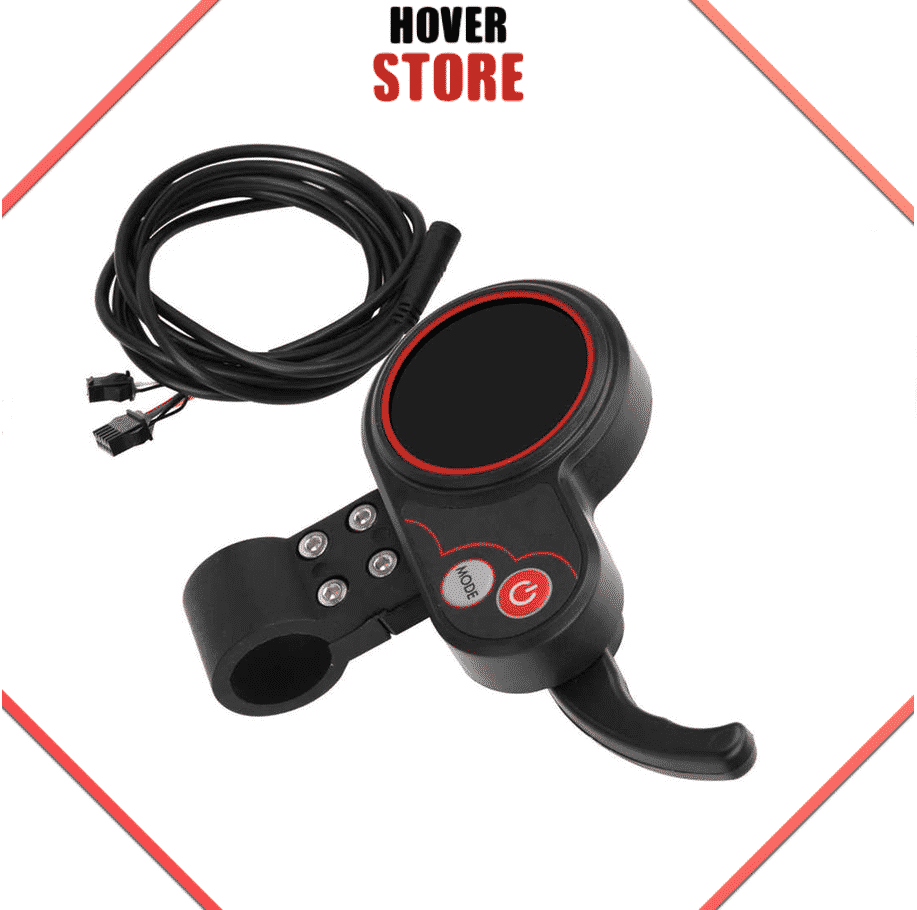 Efficace et assurément réactif, cet accélérateur pour trottinette vous permettra de donner plus de puissance à votre appareil en un simple mouvement du doigt, mais surtout de mieux contrôler l’accélération de votre véhicule en toutes circonstances. Grâce à cet équipement de qualité, vous retrouvez aisément votre vitesse de conduite optimale comme aux premiers jours.La gâchette, qui fait office de tableau de bord, est dotée d’un affichage intuitif qui vous indiquera en temps réel les informations (vitesse, tension numérique, puissance restante et autres) concernant votre état de conduite. Cet accessoire est compatible avec tous les modèles d’e-trottinettes.