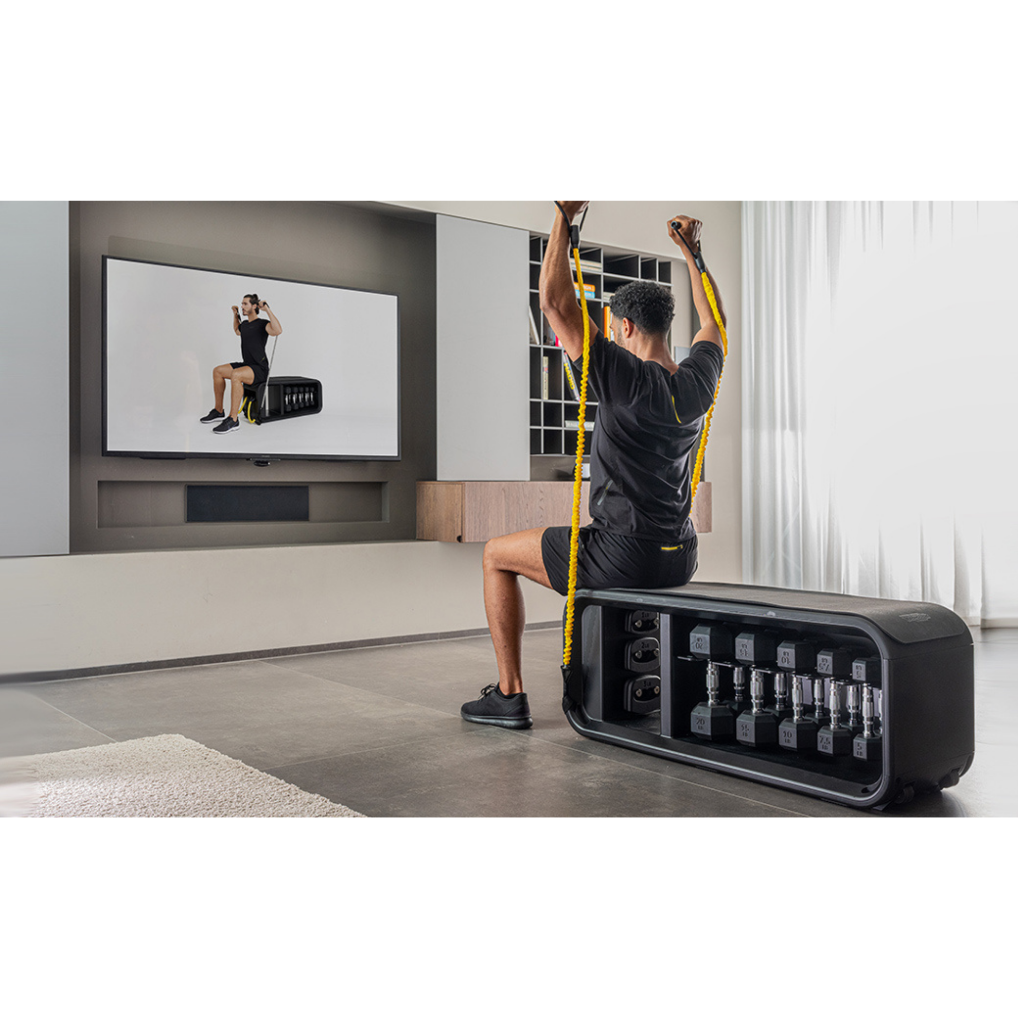 Grâce au banc Technogym Bench de chez Technogym réalisez de nombreux exercices avec des haltères hexagonaux, des bandes de résistance, des poids lestés et un tapis d’entraînement. Le banc Technogym Bench regroupe des poids lestés pour booster votre séance d’entraînement, des bandes de résistance pour une grande variété d’exercices et des intensités différentes, 5 paires d’haltères hexagonaux pour travailler votre musculation ainsi qu’un tapis d’entraînement pour assurer confort et stabilité pendant vos exercices.