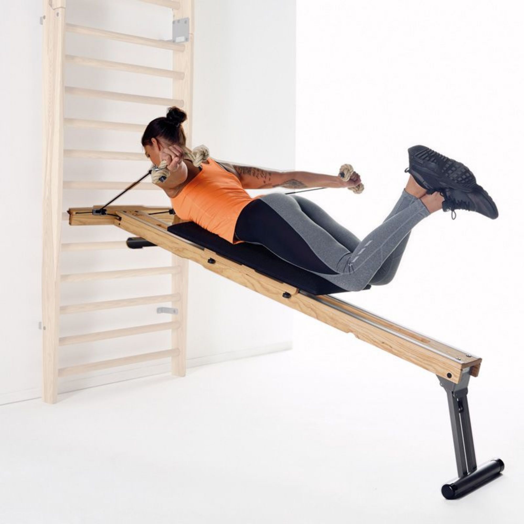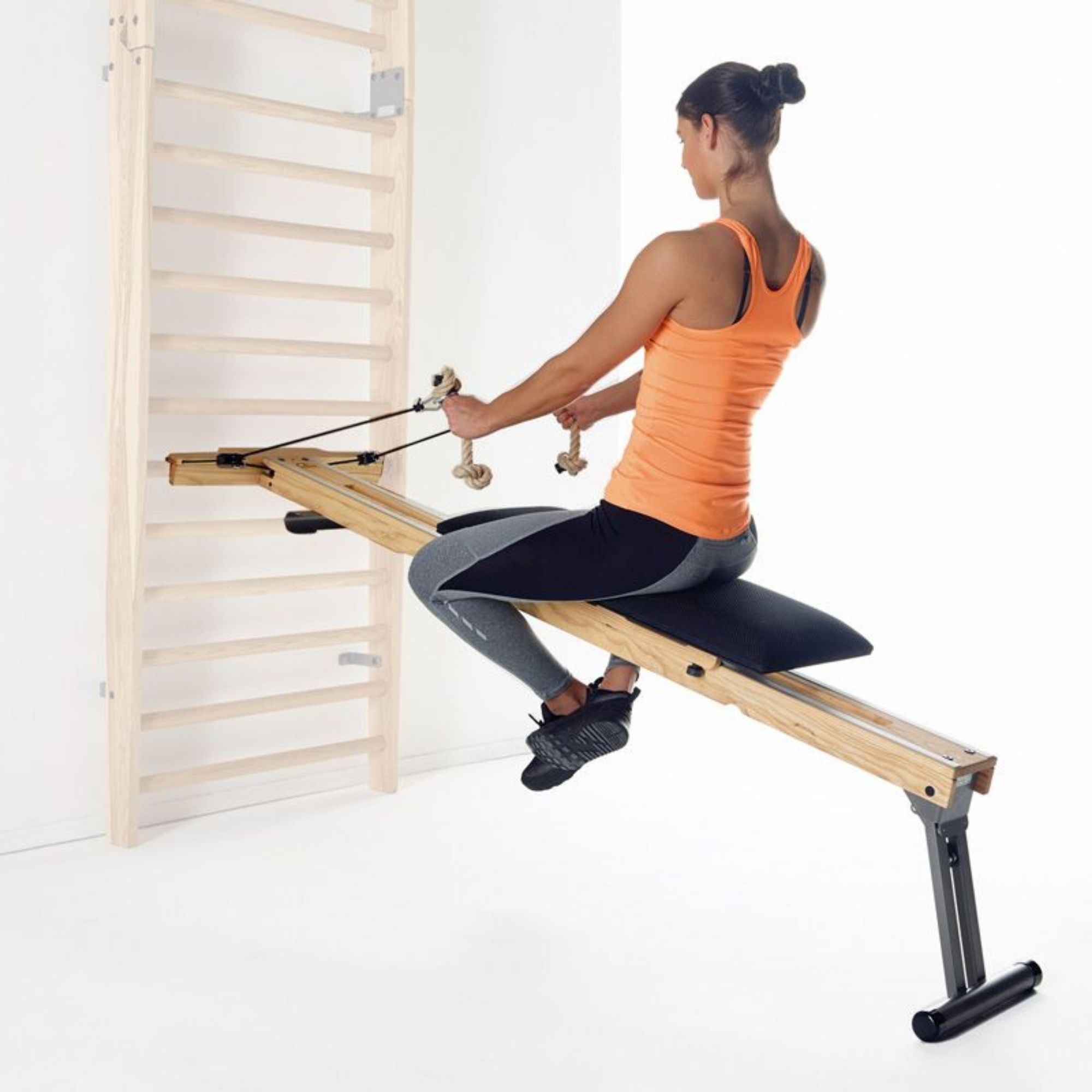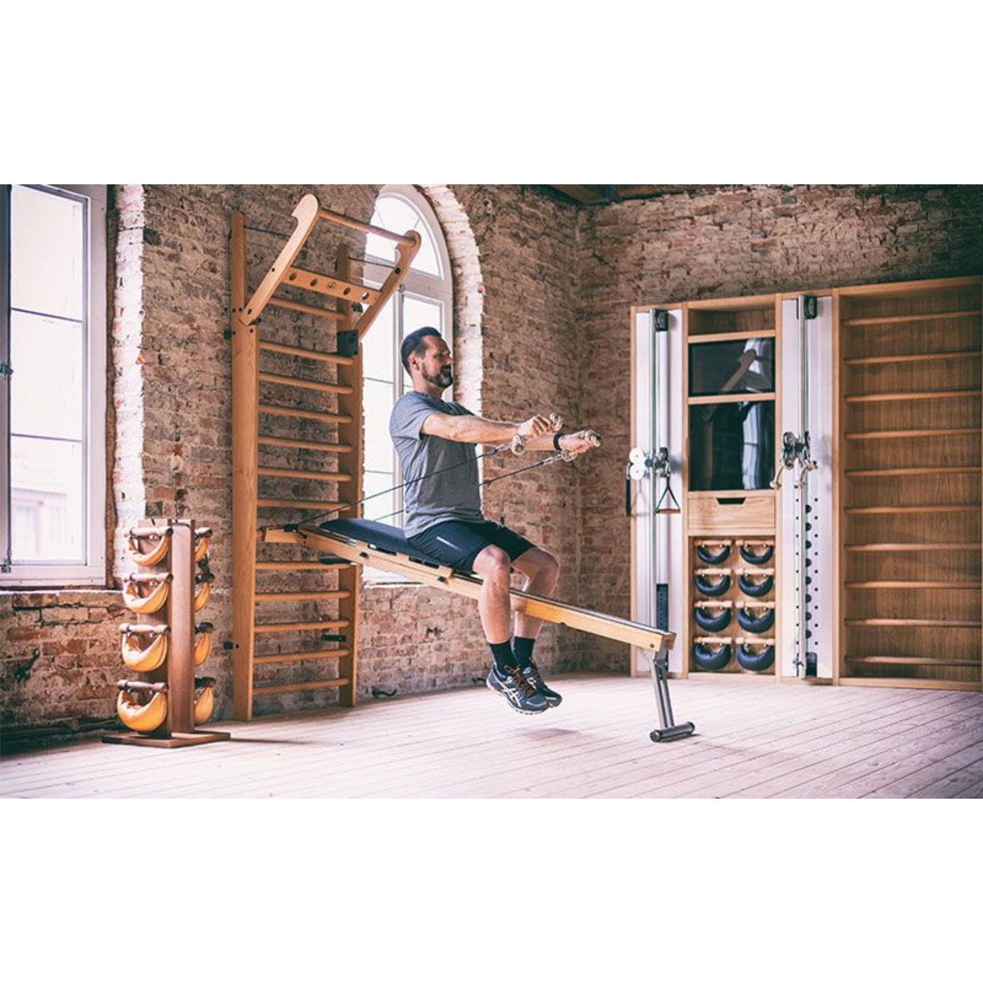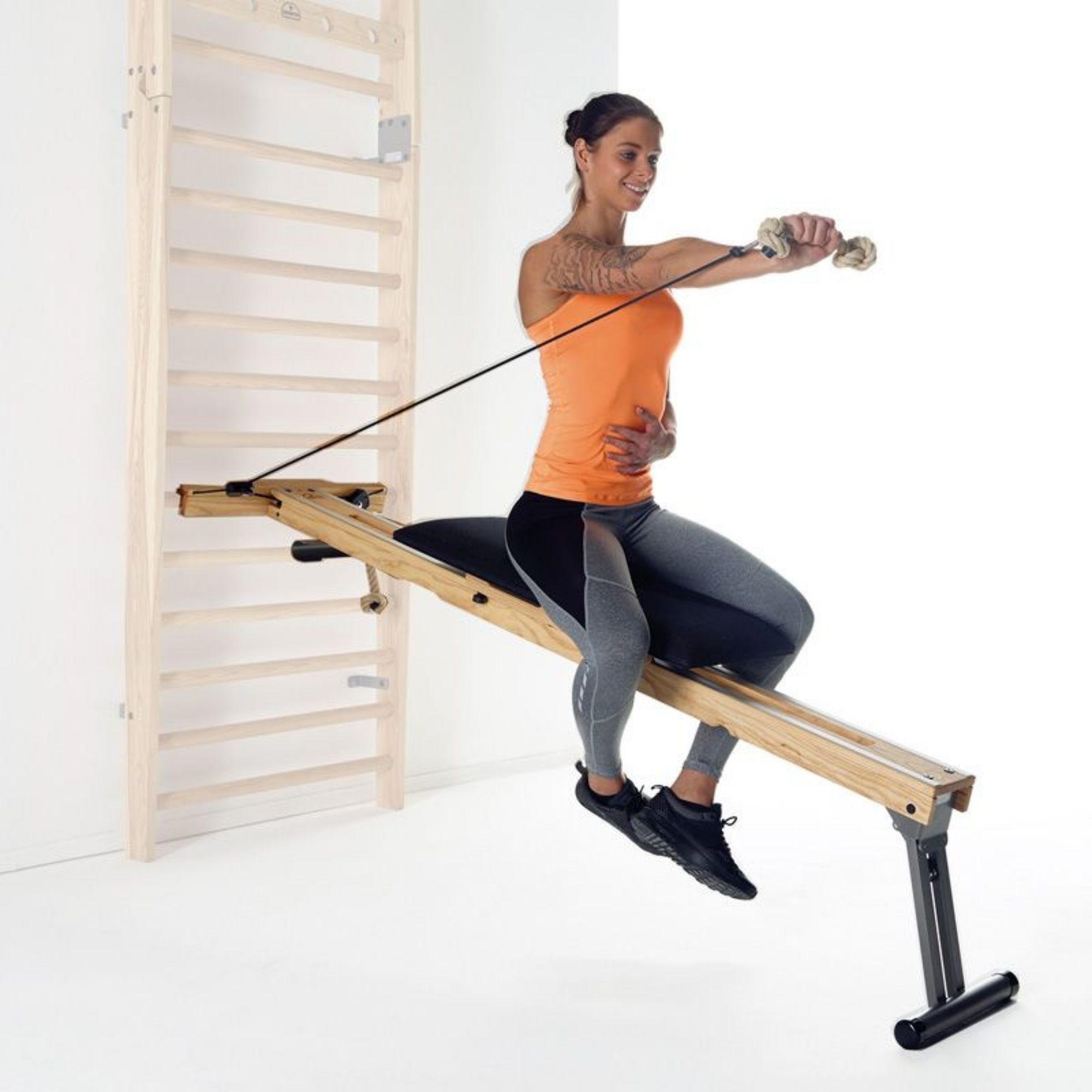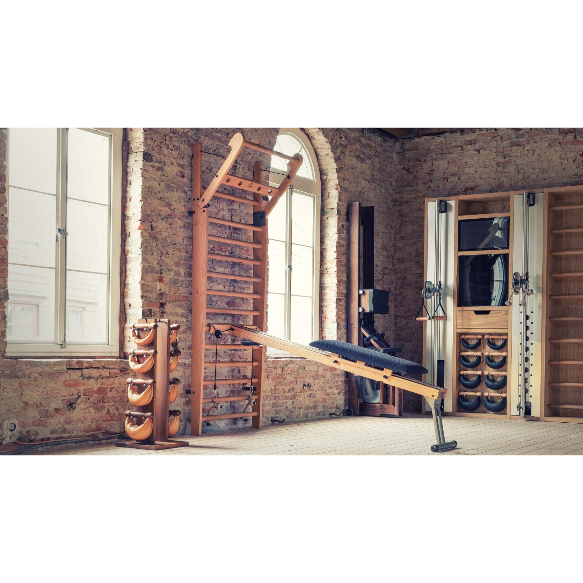 Le CombiTrainer de chez WaterRower est disponible dans différentes essences de bois : frêne, hêtre, chêne, club sport, merisier ou noyer. Ainsi, il s’adaptera parfaitement à votre espalier.