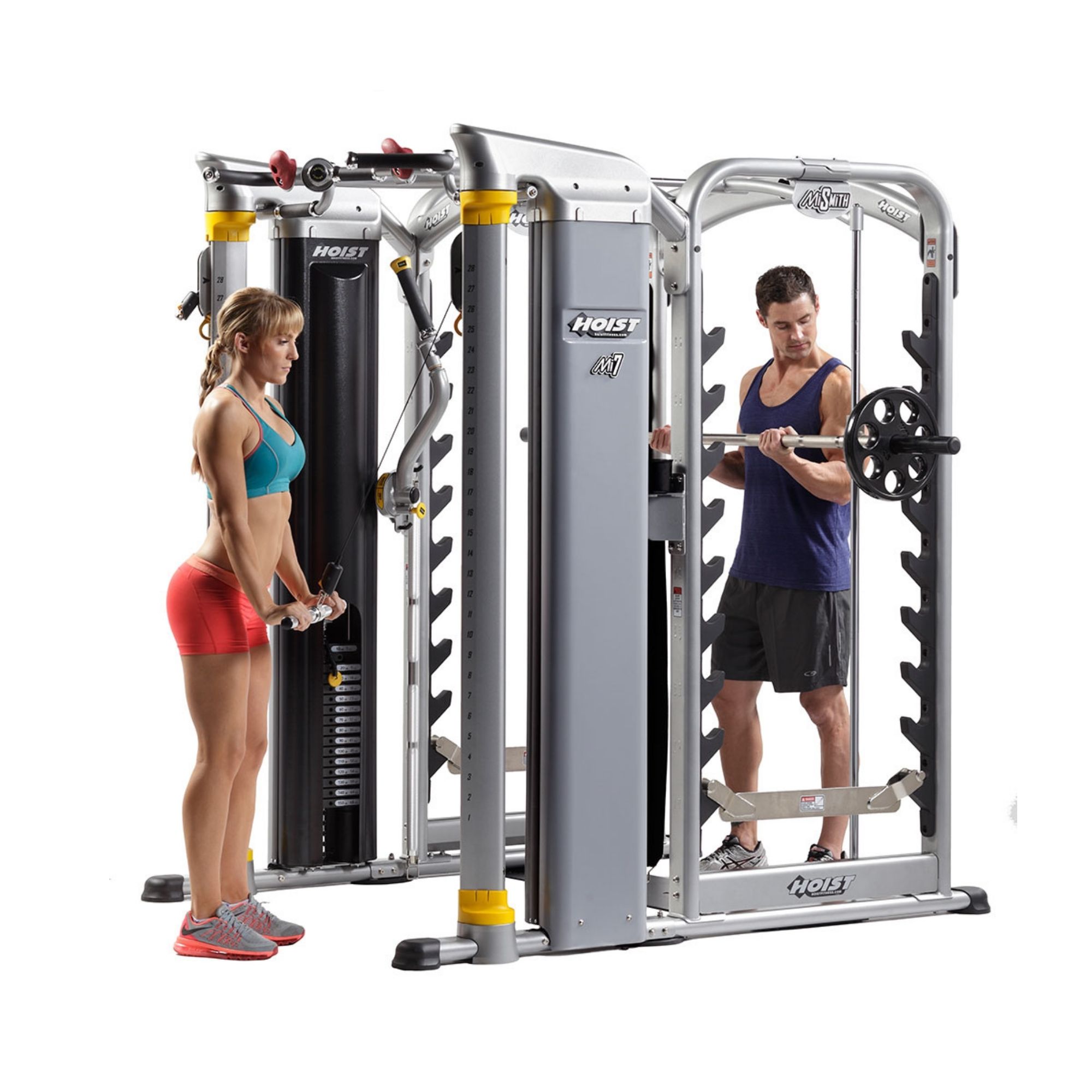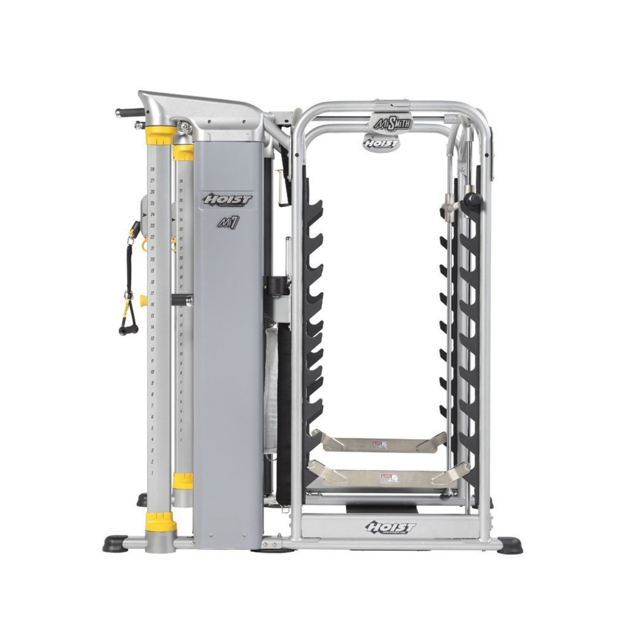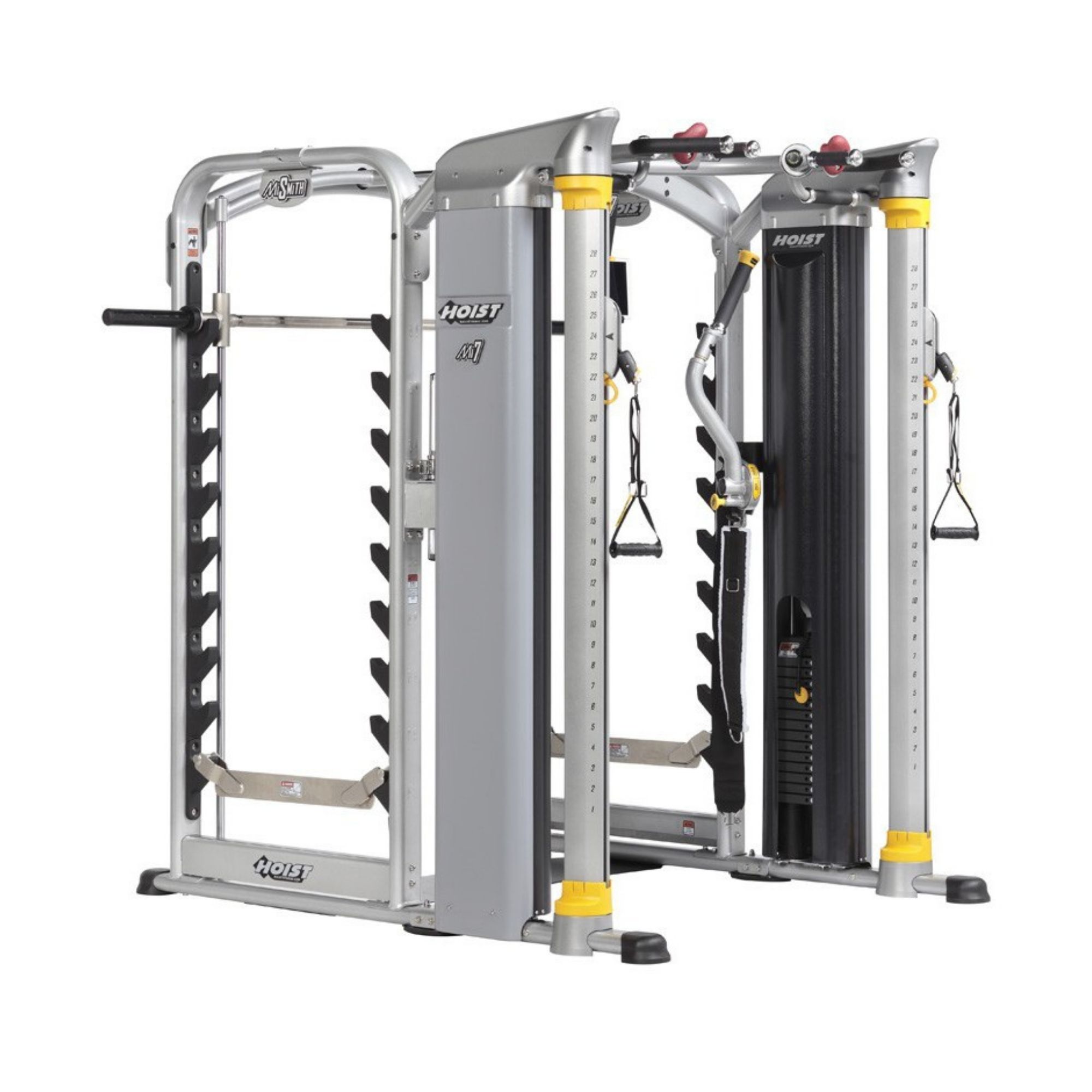 La station multifonctions double poulie et cadre 3D Mi-7-Smith de chez Hoist fait partie des stations haut de gamme. Un design moderne qui dissimule les câbles et poulies ainsi que sa qualité de fabrication la distinguent. Une utilisation quasi silencieuse est également à noter.