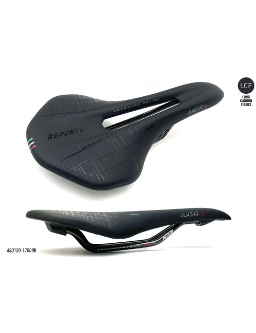 La Quasar 2.0 AERON de Selle REPENTE marque un point fort avec son design attrayant et sa grande efficacité. Son confort et sa fonctionnalité satisfont vises des coureurs professionnels et des cyclistes occasionnels. La selle de 142 mm avec sa forme plate dotée d’une ouverture centrale conçue pour réduire la pression sur le périnée procure un confort optimal. La surface arrière de support est modélisée pour respecter les exigences anatomiques, et son effet « Close fit » permet à l’usager de trouver immédiatement une position efficace. Le rail en Cromoly offre des caractéristiques mécaniques avancées. Caract: Design attrayant et efficace, confortable et adapté à